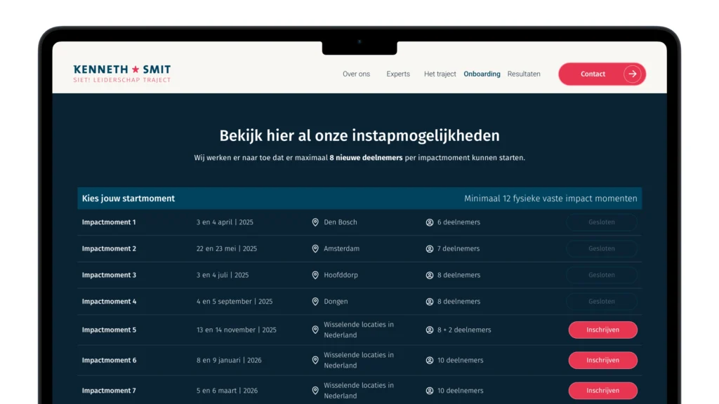 Voor Siet Leiderschap hebben we een website ontwikkeld die perfect aansluit bij hun visie: professionals en organisaties helpen om sterker en effectiever leiderschap te ontwikkelen. Het uitgangspunt was helder – een online presentatie die niet alleen informatief is, maar ook direct vertrouwen en autoriteit uitstraalt.
